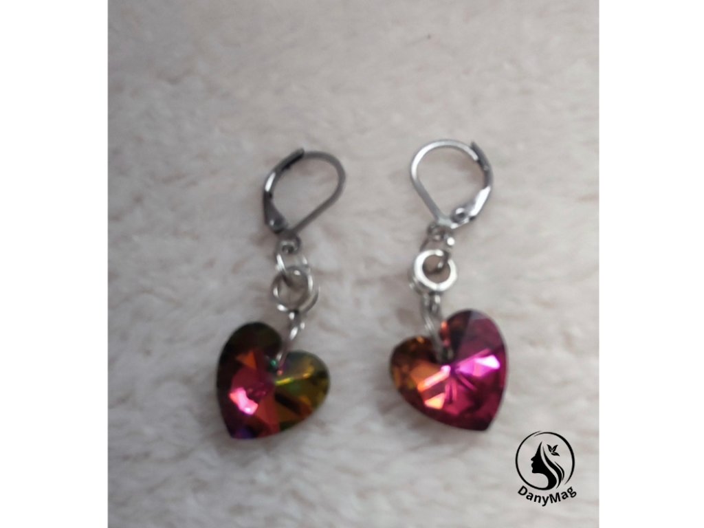 Růžovo, červeno, žluté slušivé naušnice, které nikdo nepřehlédne ve tvaru srdce, zapínání s chirurgické oceli.