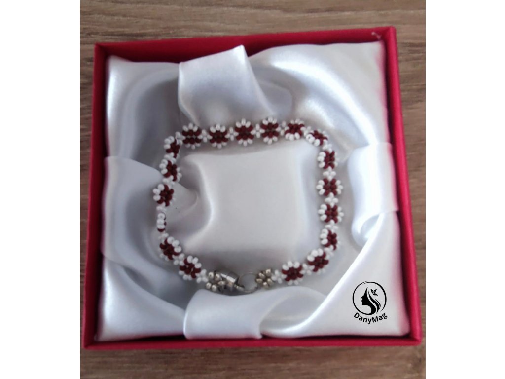 "Elegantní ručně šitý náramek z jabloneckých skleněných korálků v hnědé a bílé a barvě. Magnetické zapínání z chirurgické oceli. Ideální volba pro ženy, slečny které milují eleganci a kvalitní ruční práci. Pro obvod zápěstí 20 cm. Nevystavujte vodě. Doprava v ceně."