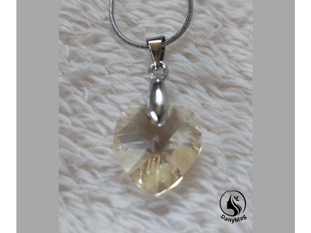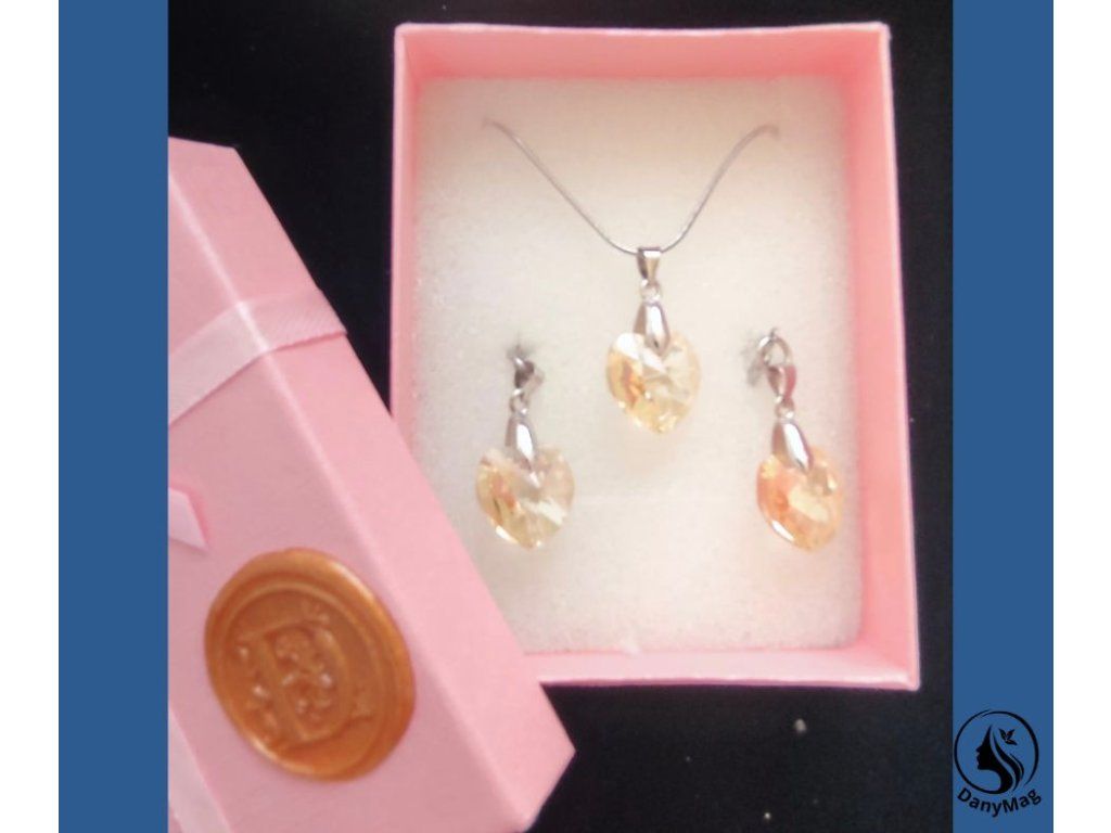 Tato souprava náušnic a řetízku je tvořena skleněnými korálky ve tvaru srdíčka, které svou jemností a barvou dodávají šperku jemný vzhled.