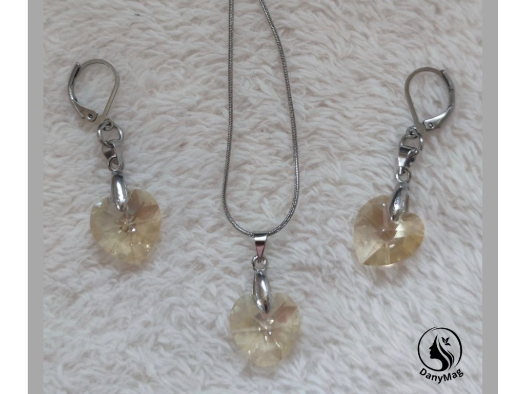 Řetízek i zapínání z chirurgické oceli zajišťují, vysokou odolnost a komfort při nošení. Souprava je lehká, příjemná na pokožce a vhodná pro každodenní radost i výjimečné chvíle.