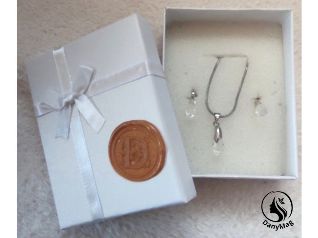 Tato velmi jemná souprava náušnic a řetízku s přívěškem z broušených skleněných korálků ve tvaru kapky je určena pro ženu každého věku. Podtrhne eleganci, styl a přirozenou ženskost.